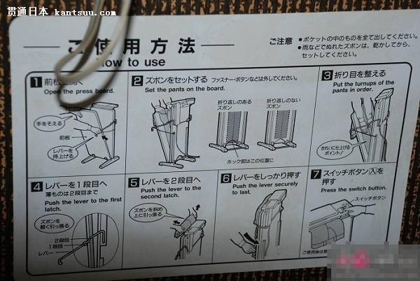 房间有块板子笔者一直没弄懂是干嘛的,感觉象是用来熨衣服的。没关系,搞不懂偶把的说明书拍下来,回来请教了高手,解答如下:裤子平整器如果薄型的可以放2条 湿的不行哦 还有薄的裤子用扳手的第2段 扣上第2段的话,要用手向上和斜面拉一拉。