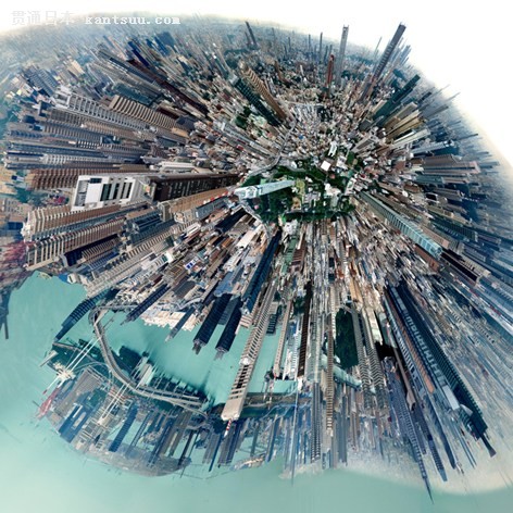 居住在美国纽约市的日本艺术家Sachigusa Yasuda创作了一组城市360度全景俯瞰图。每幅作品都使用了多达300张照片,然后用计算机技术整合成一张,结果呈现出令人眩晕的炸开的摩天大楼群,如同从万花筒中看到的一半。与一般航拍景象不一样的是,这些作品呈现了经过细致组合的建筑群,给人留下好像爆炸感觉的画面。