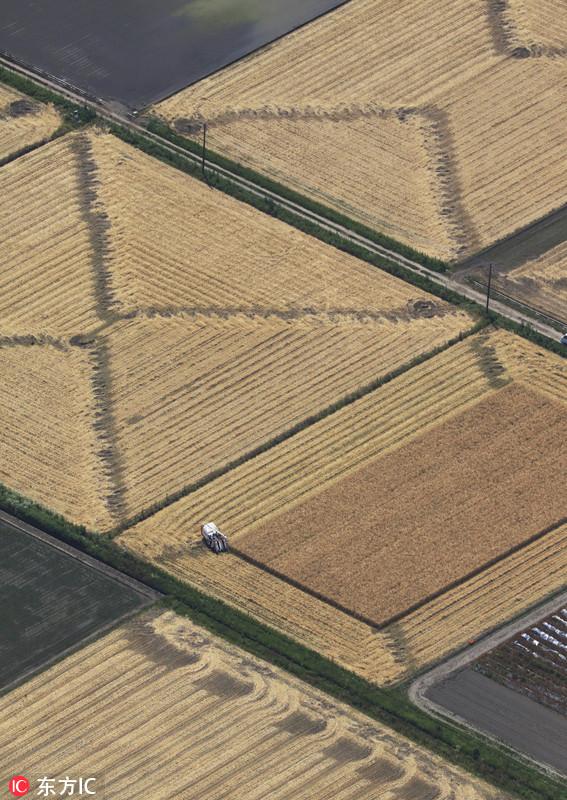 航拍日本枥木麦田收割 缤纷多彩成天然“调色盘”——贯通日本文化频道