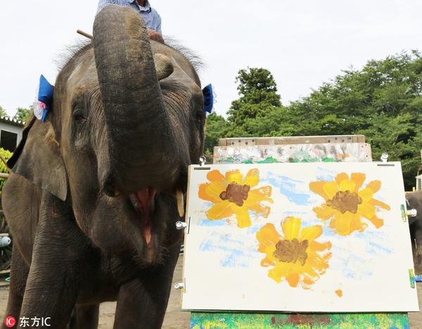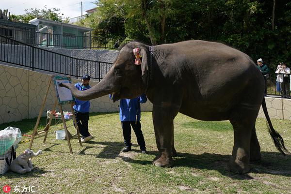 日本大象绘画天赋惊人成大明星 靠卖画给娃儿赚足奶粉钱