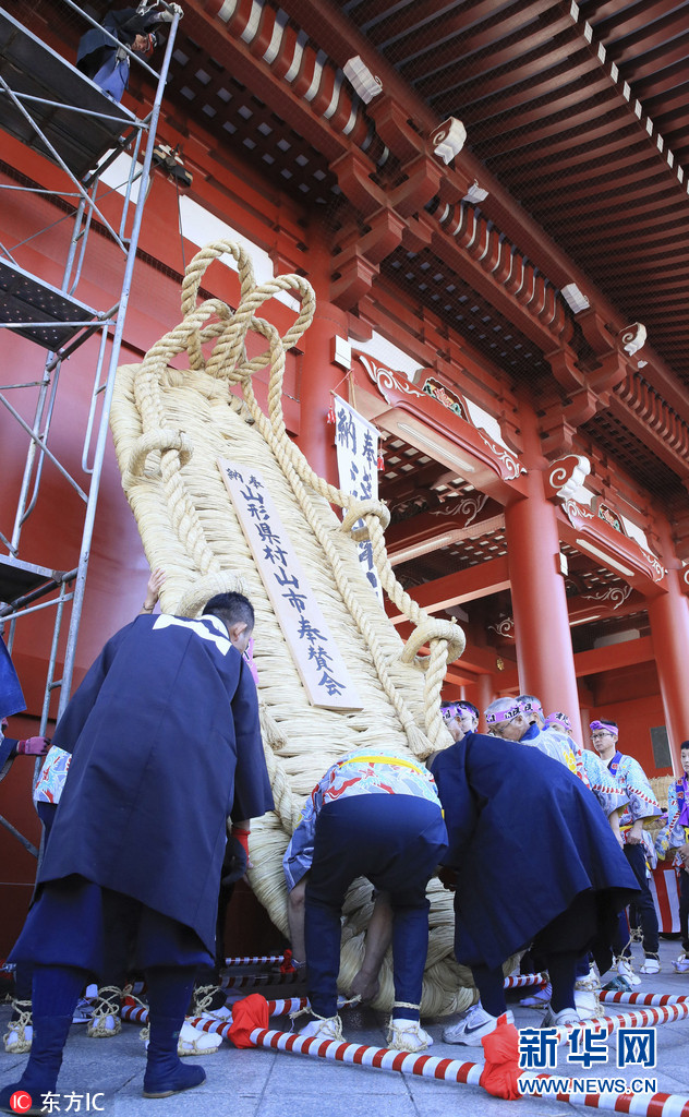 日本浅草寺悬挂500公斤巨型草鞋 用以驱魔辟邪(图)