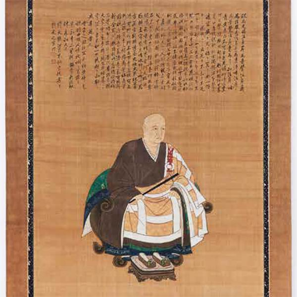狩野探幽,《龙光院创建人江月宗玩相》,江户时代,宽永12年(1635),3/21~4/21展出 从天王寺屋传来的名宝,经历了大坂夏之阵的战役,此后便将许多美术品送往江月和尚的住处——龙光院,并流传至今。此次展览中便有江月所用之物品,以及江月的追随者所使用的文物品。除了有寺院历代传承下来的珍品以外,也介绍龙光院从江月以来,代代相传至今的禅之法灯。