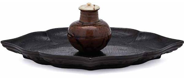 唐物丸壶茶入(宗及丸壶)附菱形内黑外屈轮文盆,津田宗及・江月宗玩所持 南宋 在从镰仓到室町的整个中世时代,日本由于长年的社会动荡和持续战乱,不同阶级的人都不约而同地需求某种精神的安慰和支撑,这时,中国南宋的禅宗思想,终于在日本找到了发展和普及的最为适宜的土壤。佛教的“禅宗”在权力之争、精神需求以及客观条件等诸多因素的综合作用下,在日本得到了划时代的发展。禅宗僧侣成为文化传播的主体,远离战火的寺庙则成为文化传承的驿站,也迎来了中日两国的文化交流自唐代以来的又一个新高潮。 在中国,宋代以后“禅宗”精神也不断向美术领域渗透,“宋元时代高僧大德以禅画度众屡见不鲜。”牧溪,就是出现在这种时代背景下的一位禅僧画家。对于许多日本画僧来说,牧溪的存在具有先驱式的典范作用。
