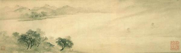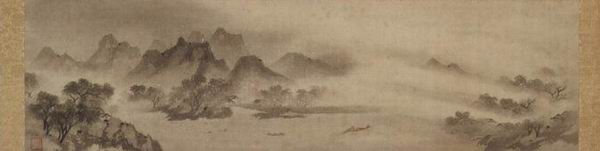 牧溪,《潇湘八景图》之《远浦归帆图》(非展品) 《潇湘八景图》中的现存的四幅《烟寺晚钟图》、《渔村夕照图》、《远浦归帆图》、《平沙落雁图》作品均是寥寥几笔、云烟缥缈、境界空濛。日本人认为“隐藏着的才是真正的花。(秘すれば花)”,意即蕴藏于物体表象背后的朦胧的美和半隐半现的寂寞,才是最富魅力、同时也是纯真而朴实的。正是出于这样的审美心理,在日本人眼中,牧溪的水墨技艺才被认为是超凡脱俗的而不是“诚非雅玩”。也正因如此,《潇湘八景图》所特有的若真若幻的艺术感觉,才能够如此深刻地渗透大和民族纤细的内心。 中国绘画之所以成为具有生命力的艺术,在于其笔墨与空白之间产生内在的张力。空白与笔墨就如同有与无一样永远在不停的流动,它们之间隐藏着内在的和谐。正如禅宗的美学精神是非理性的。强调 “无理而妙”、“意在言外”、“瞬间顿悟”。