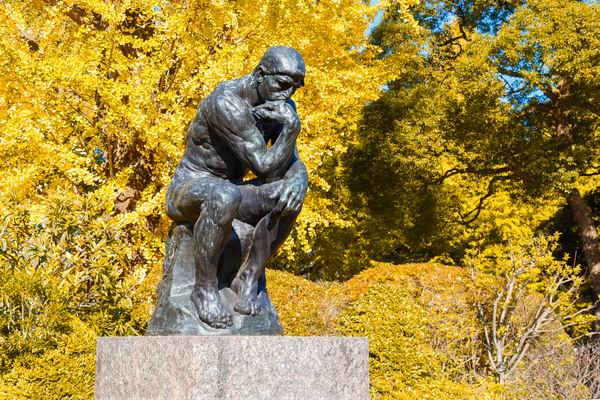 日本国立西洋美术馆景观区域的罗丹《思想者》 1918年,松方与巴黎罗丹艺术博物馆签订合约,并最终购入了50多件罗丹雕塑作品,其中包括 “地狱之门”,作为巴黎罗丹艺术博物馆的伙伴,松方也曾将他在巴黎及其周边收集的约400件绘画和雕塑作品存放于罗丹艺术博物馆的旧教堂中,直到二战结束。如今包括《思想者》在内的大型公共雕像现在存放于日本国立西洋美术馆入口前的景观区域,这些罗丹雕塑都仿造原始模具铸造。