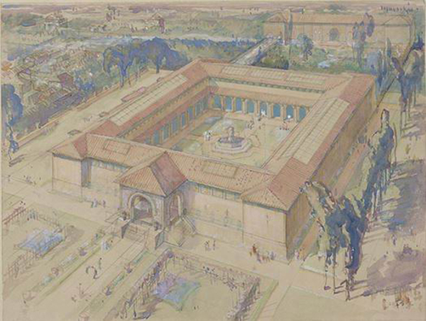 弗兰克·布朗维,《共乐美术馆构想》,水彩,日本国立西洋美术馆藏 随着战争的蔓延,艺术成为了松方理想和现实间的媒介,一方面他以商人的冷静视角发现战争中的船舶商机,另一方面他也收藏传达战争痛苦的艺术作品。