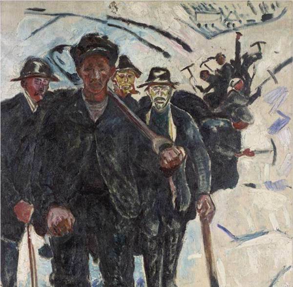 蒙克,《雪中的劳动者》,1910年 油彩,个人藏,日本国立西洋美术馆寄托(松方旧藏) 日本美术史家矢代幸雄在1958年出版的《艺术的赞助人》一书中描述说:“我认为,松方先生在巴黎市场的威望是很高的,这也是依仗其大规模的买手,另纵观松方先生的风貌、态度、人品都一览无余展现于巴黎市场,是一位不逊色于任何人的世界级大实业家,正因为如此,才博得了这般尊重。”