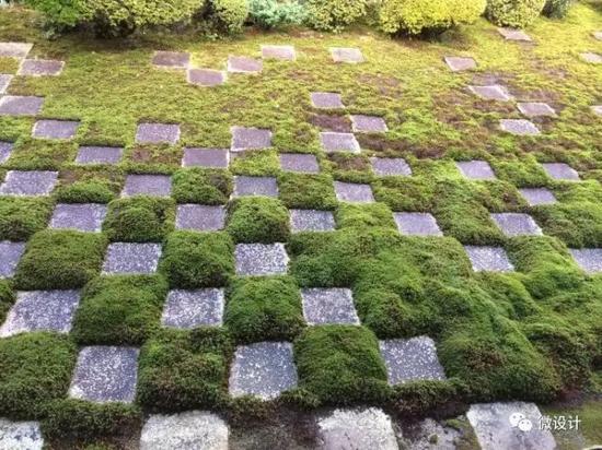 北庭造型主要以青苔和正方形石头组合,分布在小方格内;