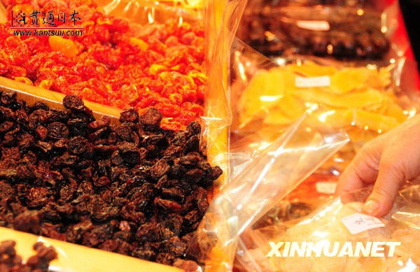 1月9日,东京棒球场内,游客选购干货。2010年1月8日至11日,日本“故乡节”在东京棒球场举办,日本冲绳、秋田、青森等地的独特节日庆祝活动被搬到东京棒球场内,欣赏极具地域特色的庆祝仪式之余,观众们还可以遍尝日本全国各地的美味小吃。热闹的气氛不亚于我们中国人逛庙会。新华社记者华义摄