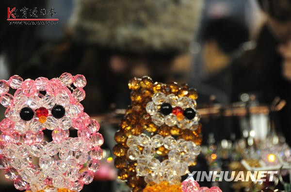 1月9日,东京棒球场内,游客在一家手工艺品摊位前观赏。2010年1月8日至11日,日本“故乡节”在东京棒球场举办,日本冲绳、秋田、青森等地的独特节日庆祝活动被搬到东京棒球场内,欣赏极具地域特色的庆祝仪式之余,观众们还可以遍尝日本全国各地的美味小吃。热闹的气氛不亚于我们中国人逛庙会。新华社记者华义摄